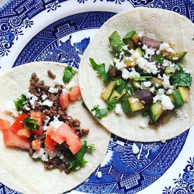 I made a Tex-Mex taco with ground beef and spices and I also made a squash and onion taco which is my new favorite. I actually prefer it over the meat version and I feel quite satisfied!